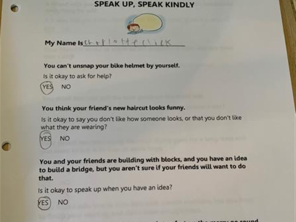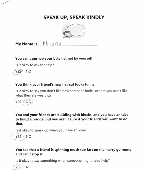 3. Click here to view and print our activity: Speak Up, Speak Kindly.
