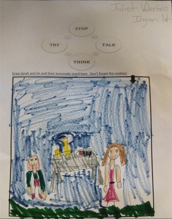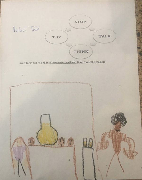 4. Click here to find a coloring page with Jin and Sarah from our Problem-Solving Cycle story. Remember, you can send a picture of your drawing to me and I'll add it to our class gallery. I love to see and share your work!