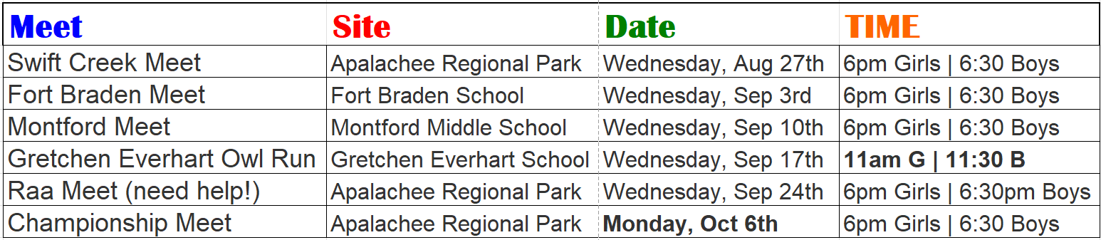 For more information about Augusta Raa's Cross Country, please contact Head Coach Joshua Atkins- atkinsj@leonschools.net