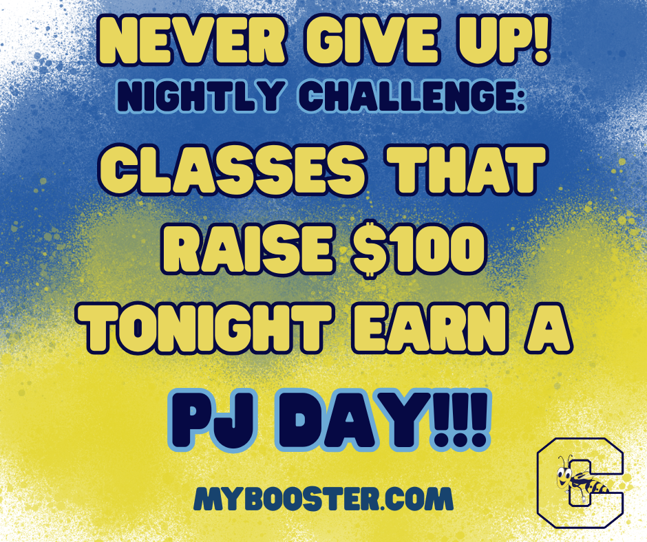 Our Conley Yellowjackets Pace Setters are off to an amazing start! We are up to 18% of our school registered and prizes are already starting to roll out!Tonight is our first nightly challenge. If our class is able to raise $100 before 8:00am tomorrow morning, we will earn a PJ DAY!11-3-25